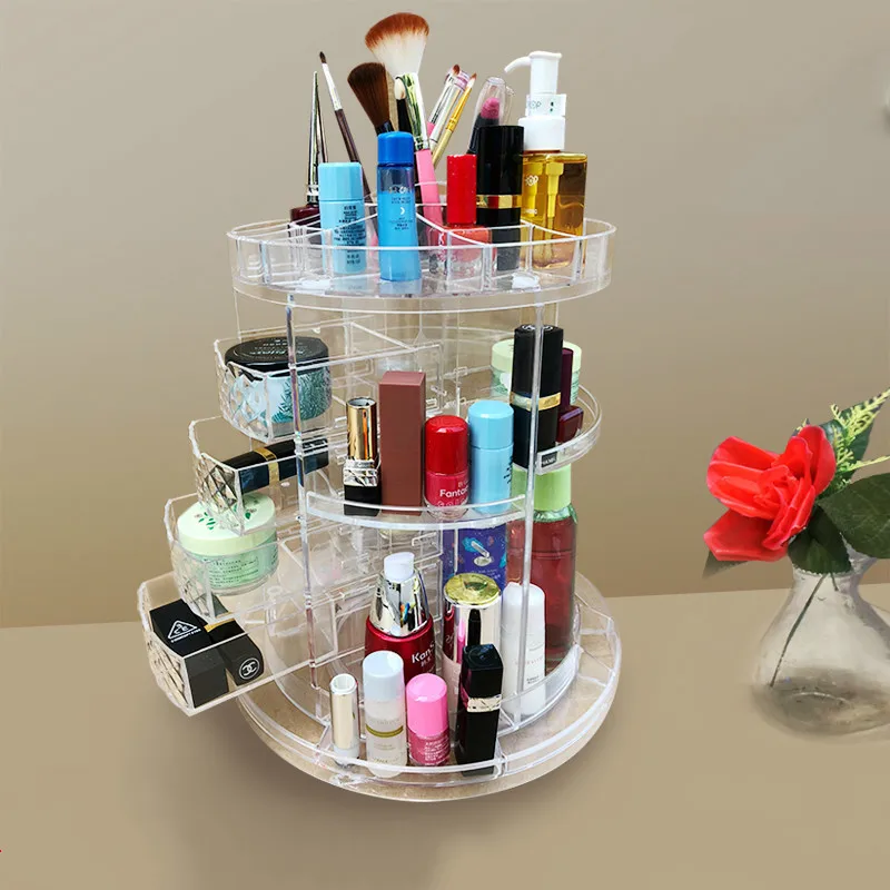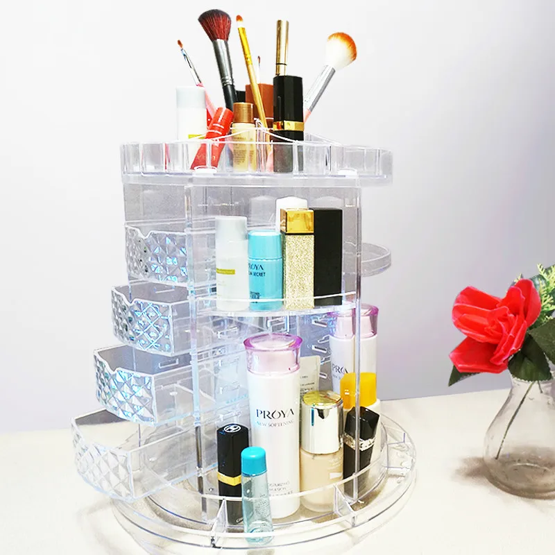 .image for New 360-degree Rotating Drawer Makeup Storage Box Brush Holder Jewelry Organizer Case Transparent A