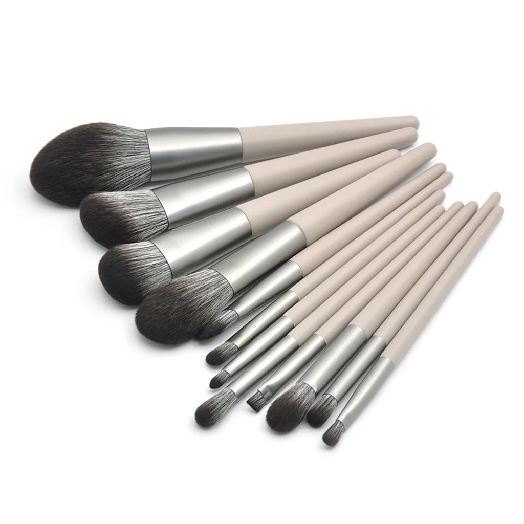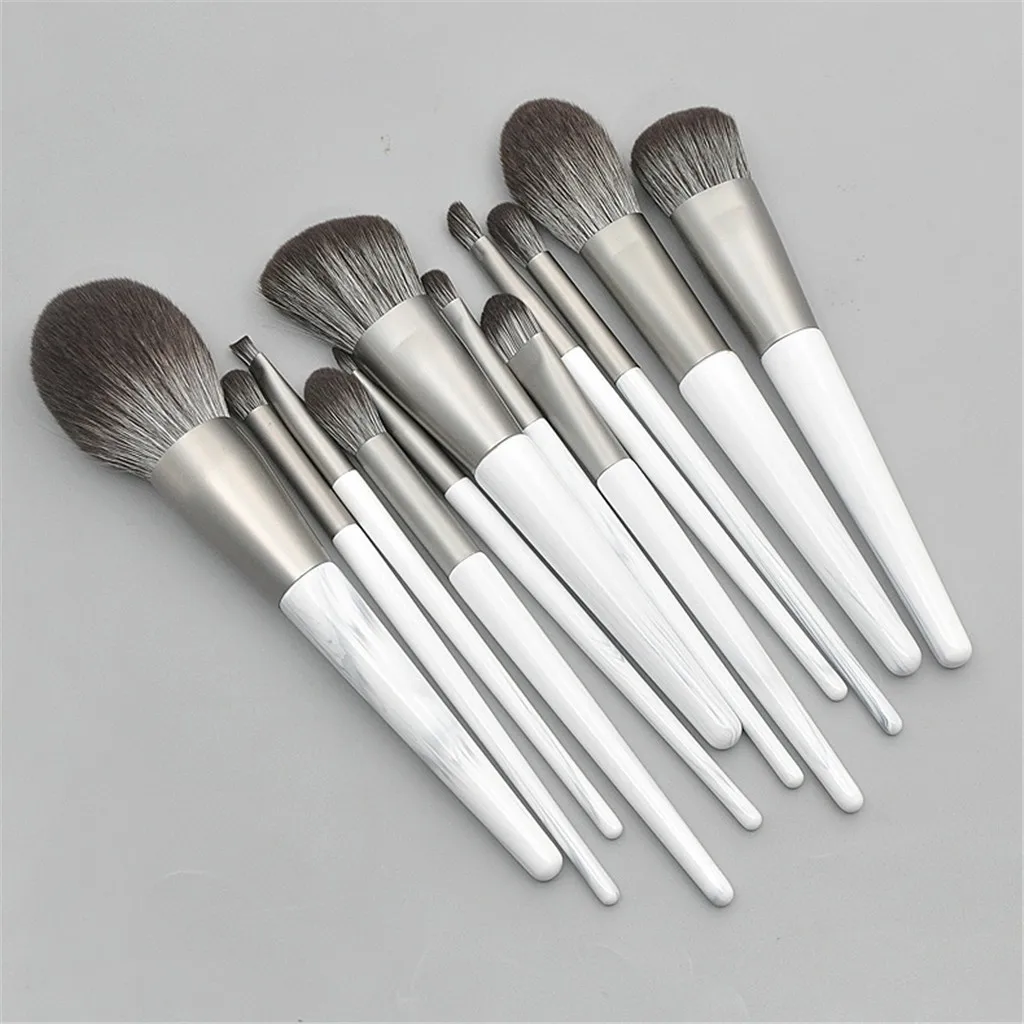 .image for OutTop Makeup Brushes 12 Pcs Foundation Eyebrow Eyeliner Tapered Wooden Handle Powder Brush White/G