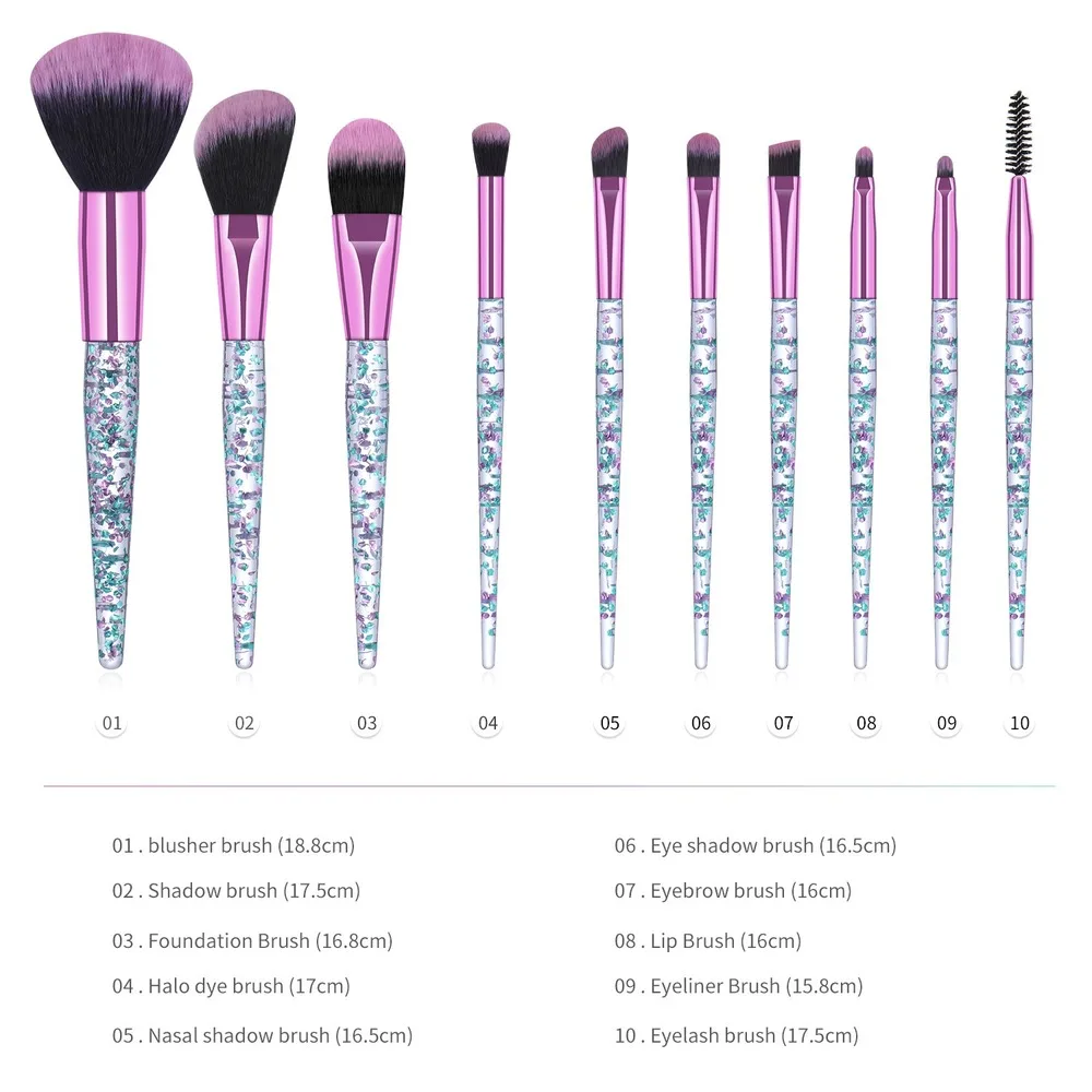 .image for 10 Pcs Diamond Crystal Makeup Brushes Set Foundation Blush Powder Eyebrow Eyelash Brush Blending Ey