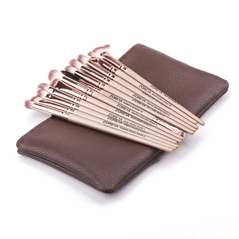 .image of Zoreya Brand 12pcs Essential Eye Makeup Brush Sets Soft Synthetic Hair Blending Eye Shadow Crease E