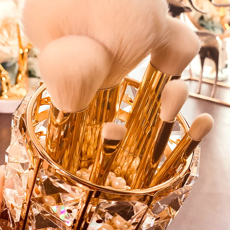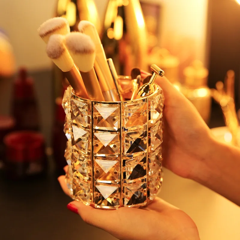 Best Chance of ONEUP Europe Crystal Metal Makeup Brush Storage Tube Eyebrow Pencil Makeup Organizer Bead Crystal J